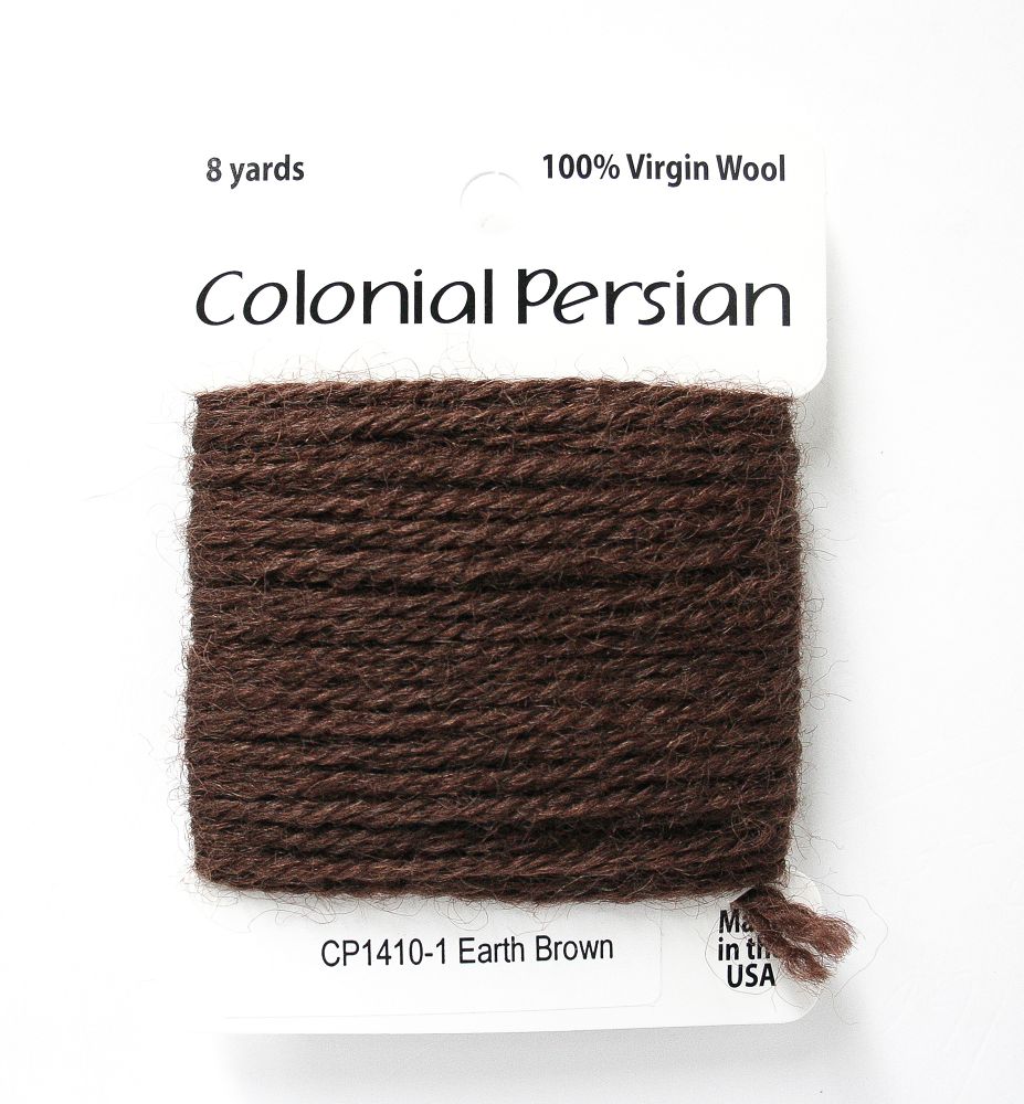 This is Colonial Persian from Colonial Needle Co in color Earth Brown. A traditional needlepoint fiber. Comparable to the now-discontinued Paternayan wool. Use all three strands on 10 mesh, 2 strands on 13 mesh, 1 strand on 18 mesh. 1 strand is about equivilant to 1 strand of crewel wool.