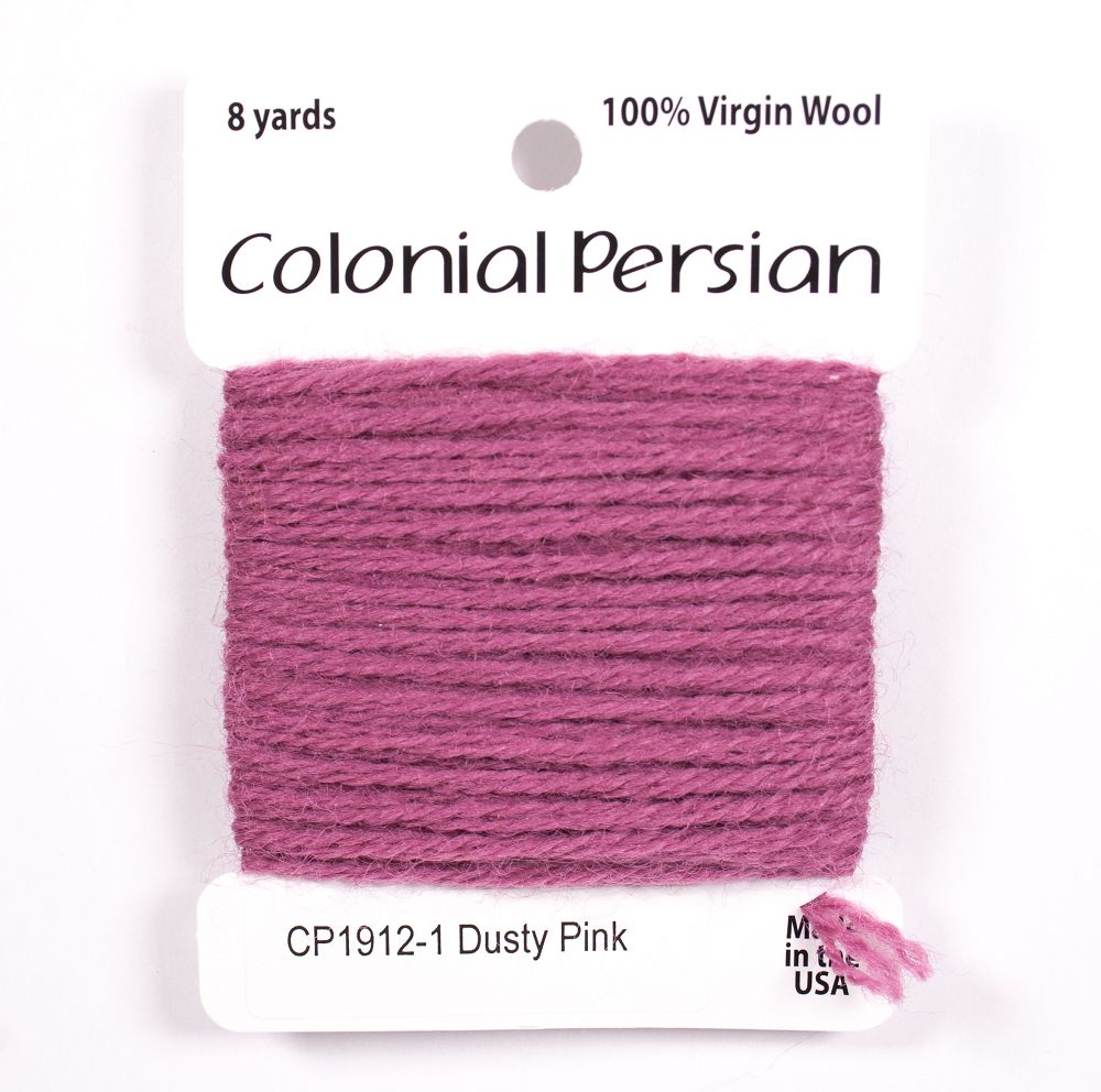This is Colonial Persian from Colonial Needle Co in color Dusty Pink. A traditional needlepoint fiber. Comparable to the now-discontinued Paternayan wool. Use all three strands on 10 mesh, 2 strands on 13 mesh, 1 strand on 18 mesh. 1 strand is about equivilant to 1 strand of crewel wool.