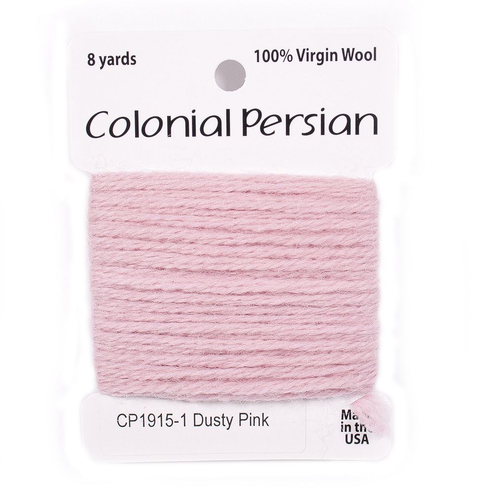 This is Colonial Persian from Colonial Needle Co in color Dusty Pink. A traditional needlepoint fiber. Comparable to the now-discontinued Paternayan wool. Use all three strands on 10 mesh, 2 strands on 13 mesh, 1 strand on 18 mesh. 1 strand is about equivilant to 1 strand of crewel wool.