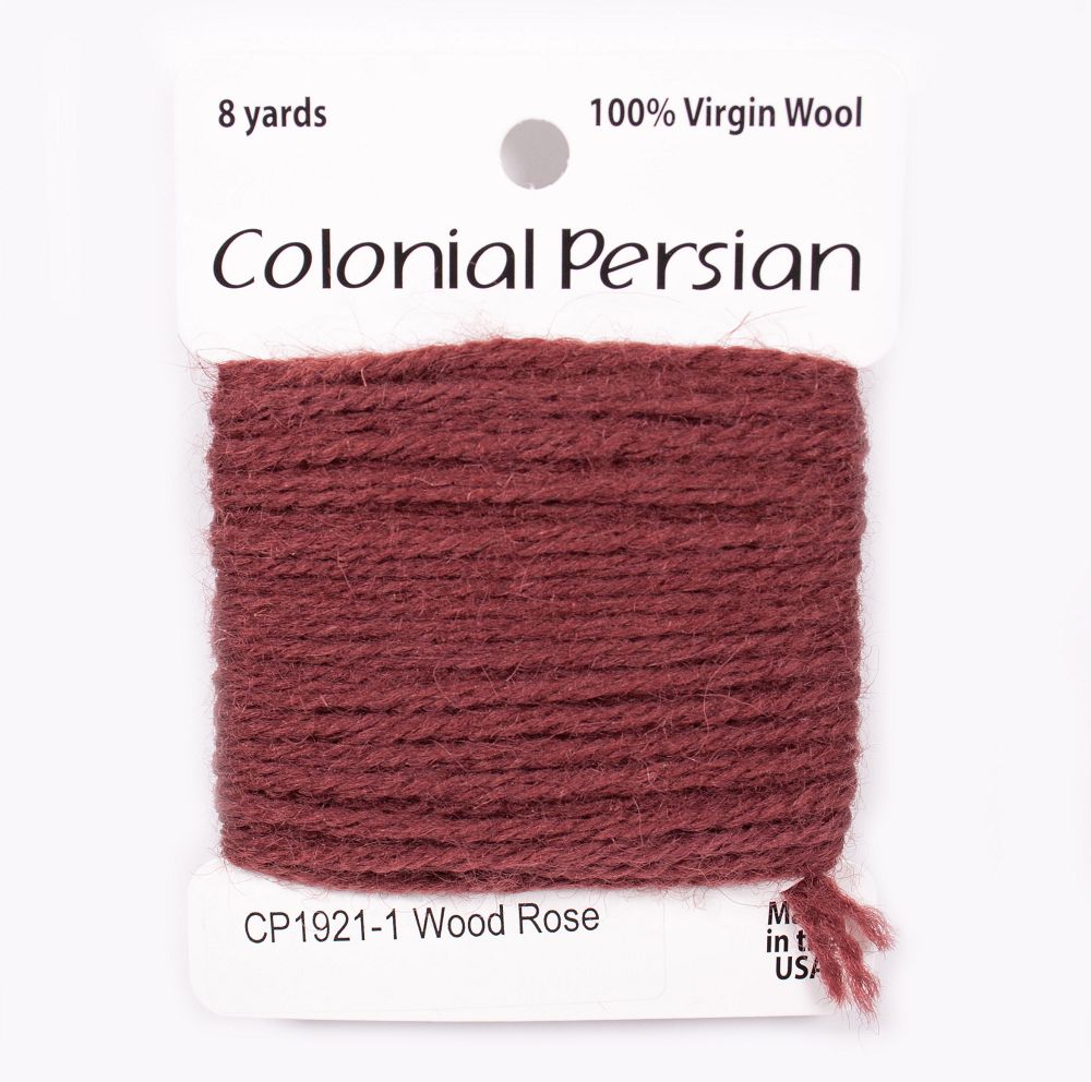 This is Colonial Persian from Colonial Needle Co in color Wood Rose. A traditional needlepoint fiber. Comparable to the now-discontinued Paternayan wool. Use all three strands on 10 mesh, 2 strands on 13 mesh, 1 strand on 18 mesh. 1 strand is about equivilant to 1 strand of crewel wool.