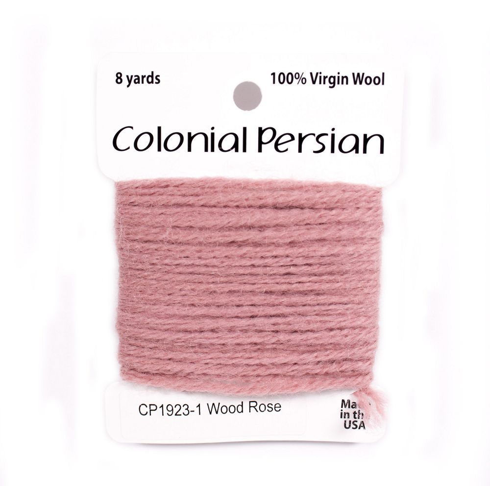This is Colonial Persian from Colonial Needle Co in color Wood Rose. A traditional needlepoint fiber. Comparable to the now-discontinued Paternayan wool. Use all three strands on 10 mesh, 2 strands on 13 mesh, 1 strand on 18 mesh. 1 strand is about equivilant to 1 strand of crewel wool.