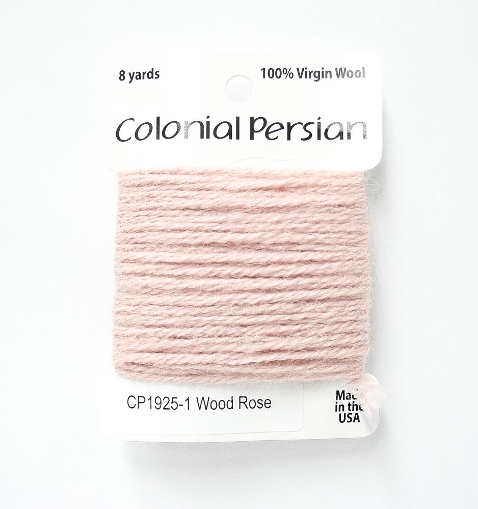 This is Colonial Persian from Colonial Needle Co in color Wood Rose. A traditional needlepoint fiber. Comparable to the now-discontinued Paternayan wool. Use all three strands on 10 mesh, 2 strands on 13 mesh, 1 strand on 18 mesh. 1 strand is about equivilant to 1 strand of crewel wool.