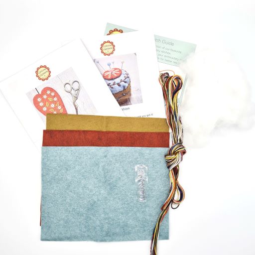 Everything you need to complete this practical and beautiful embroidered scissors pouch and cute little pincushion is in the box.