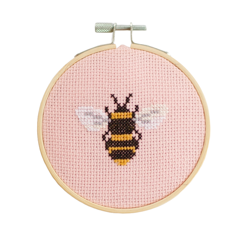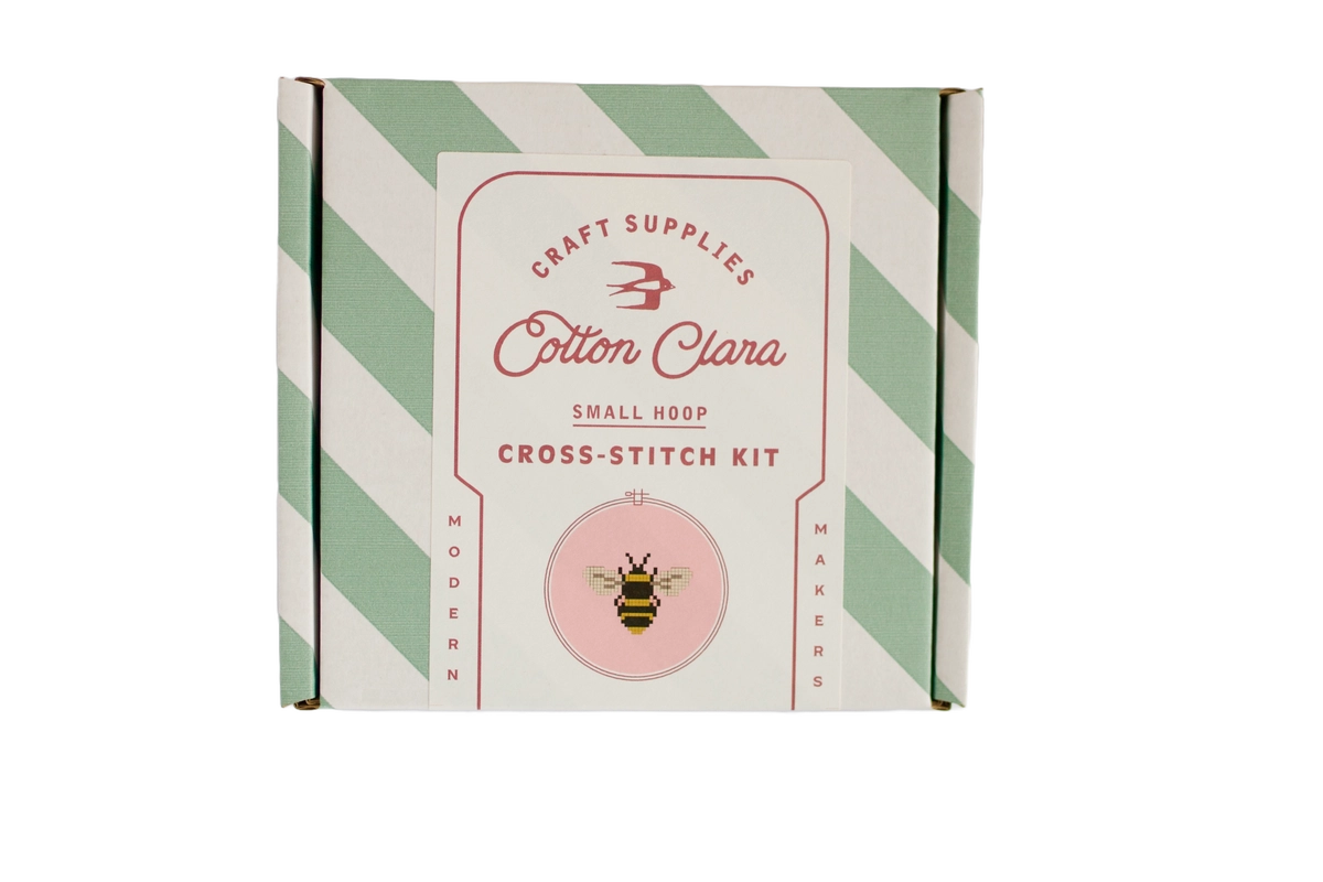 From the Leicestershire, England based brand Cotton Clara by embroidery designer Chloe Hardisty, this Bee kit is part of her Mini Cross Stitch Collection. The hoop measures about 4 1/4" across. Everything required to complete this kit is included: hoop, fabric, thread, needle, backing disc, wadding, instructions and full colour cross stitch chart. This kit is suitable for beginners. Please note the fabric is not printed in cross stitch kits. Cotton Clara's packaging is fully recyclable, and contains no plastic.