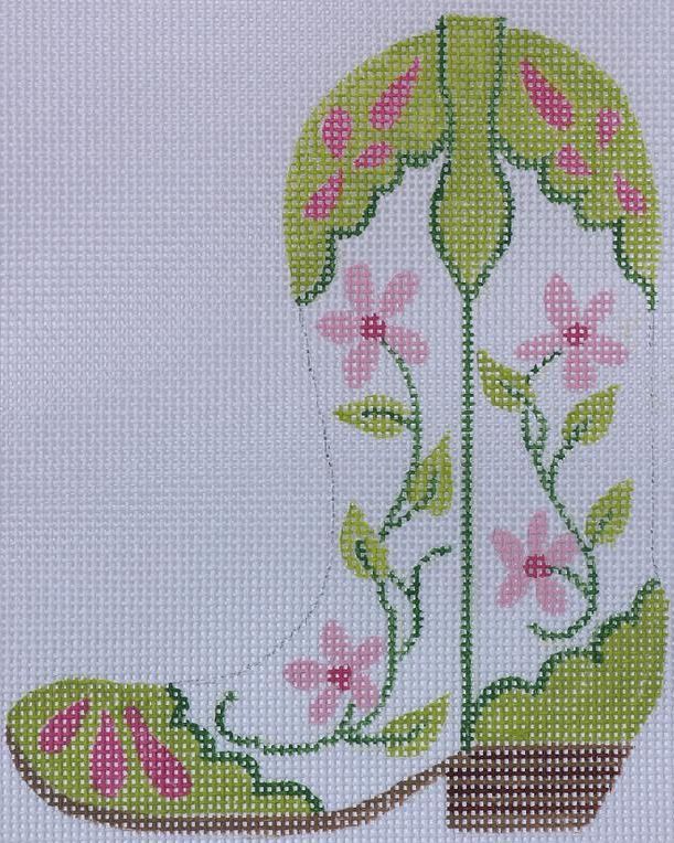 Kate Dickerson Needlepoint Collections Cowgirl Boot - Pink & Green (Left) Needlepoint Canvas
