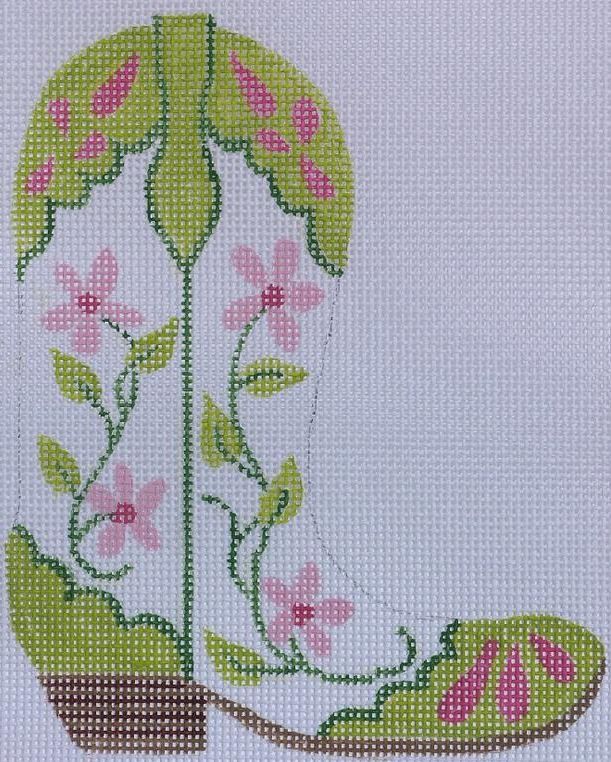 Kate Dickerson Needlepoint Collections Cowgirl Boot Pink & Green Needlepoint Canvas Right