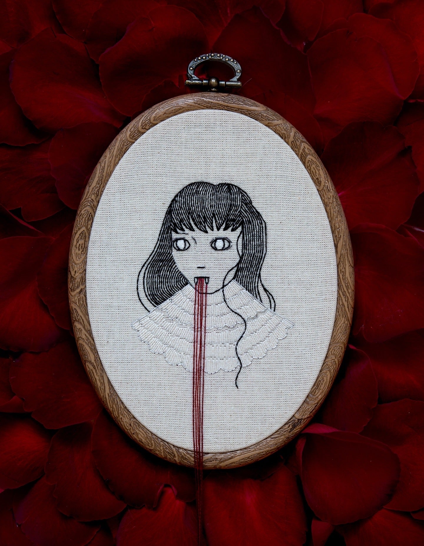 You’ll also learn how to bring depth and life to every piece with special techniques such as adding shimmering details through beadwork, creating a haunting effect with loose threads, or building texture with French knots.