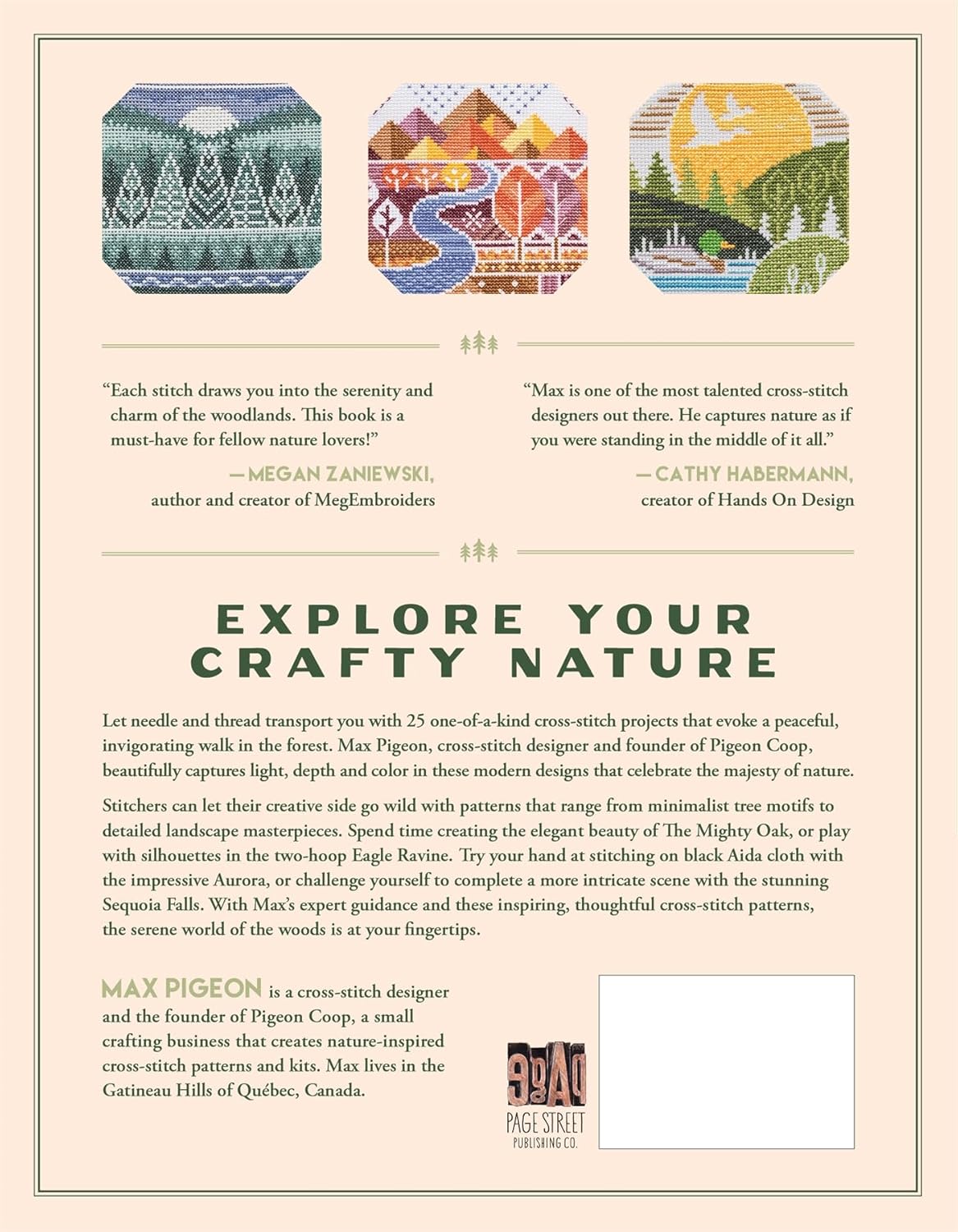 Let needle and thread transport you with 25 one-of-a-kind cross-stitch projects that evoke a peaceful, invigorating walk in the forest. Max Pigeon, cross-stitch designer and founder of Pigeon Coop, beautifully captures light, depth and color in these modern designs that celebrate the majesty of nature.