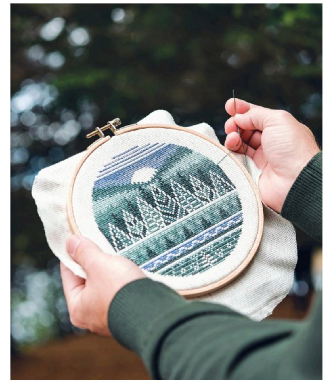 Stitchers can let their creative side go wild with patterns that range from minimalist tree motifs to detailed landscape masterpieces. Spend time creating the elegant beauty of The Mighty Oak or play with silhouettes in the two-hoop Eagle Ravine. Try your hand at stitching on black Aida cloth with the impressive Aurora, or challenge yourself to complete a more intricate scene with the stunning Sequoia Falls. With Max’s expert guidance and these inspiring, thoughtful cross-stitch patterns, the serene world of the woods is at your fingertips.