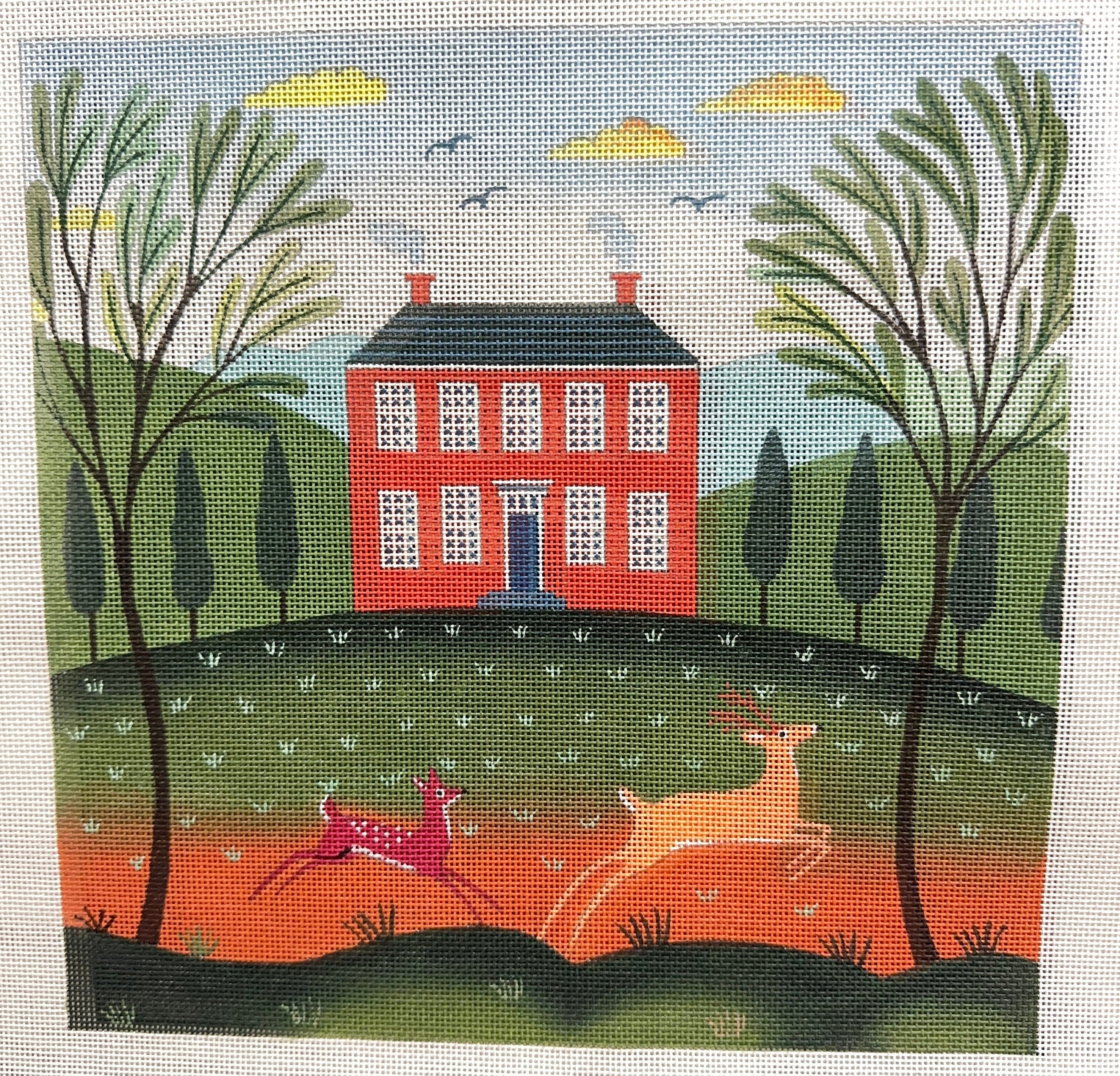 A beautiful hand painted needlepoint canvas from Painted Pony Designs. American Folk Painting by Diane Ulmer Pedersen.