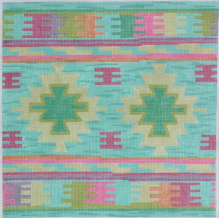 Kate Dickerson Needlepoint Collections Dhurrie Square Turquoise & Purple Needlepoint Canvas