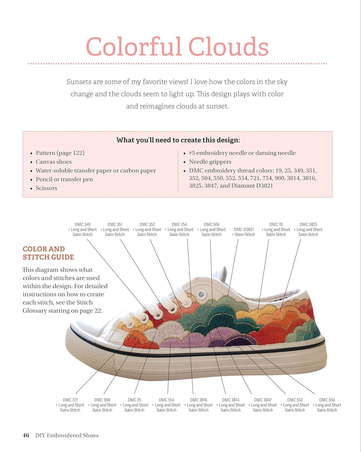 Create your own unique footwear with shoe embroidery! DIY Embroidered Shoes by Melissa Galbraith of M Creative J is an embroidery primer with detailed information from beginner-friendly to advanced. It features 13 finished shoe patterns, including downloadable designs that can be used on any of the most popular brands, from Converse All Star high-tops to TOMS. It also has an extensive stitch dictionary with collections including birds, bugs, butterflies, planets, flowers, plants, fruits, vegetables, the alphabet, and landscapes. There are step-by-step instructions for stitching on shoes, plus an overview on the tools, threads, and canvas shoes you'll need. QR codes for additional video instruction are also included, plus two espadrille patterns to make and embroider your own shoes.