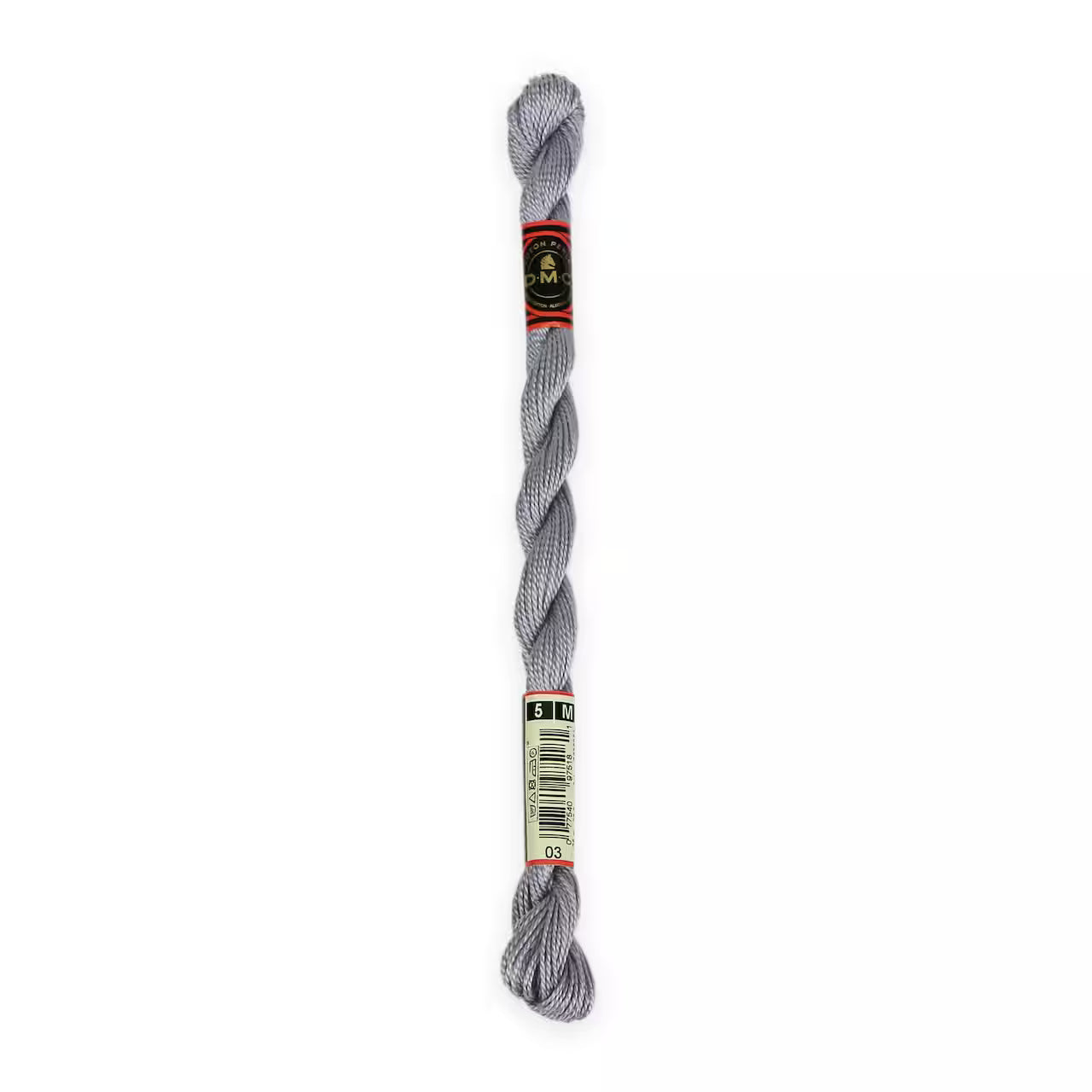 This is Pearl Cotton #5 from DMC in color 003 Medium Tin. A durable cotton thread, excellent for first time stitchers and experts alike! 1 ply on 18 mesh.