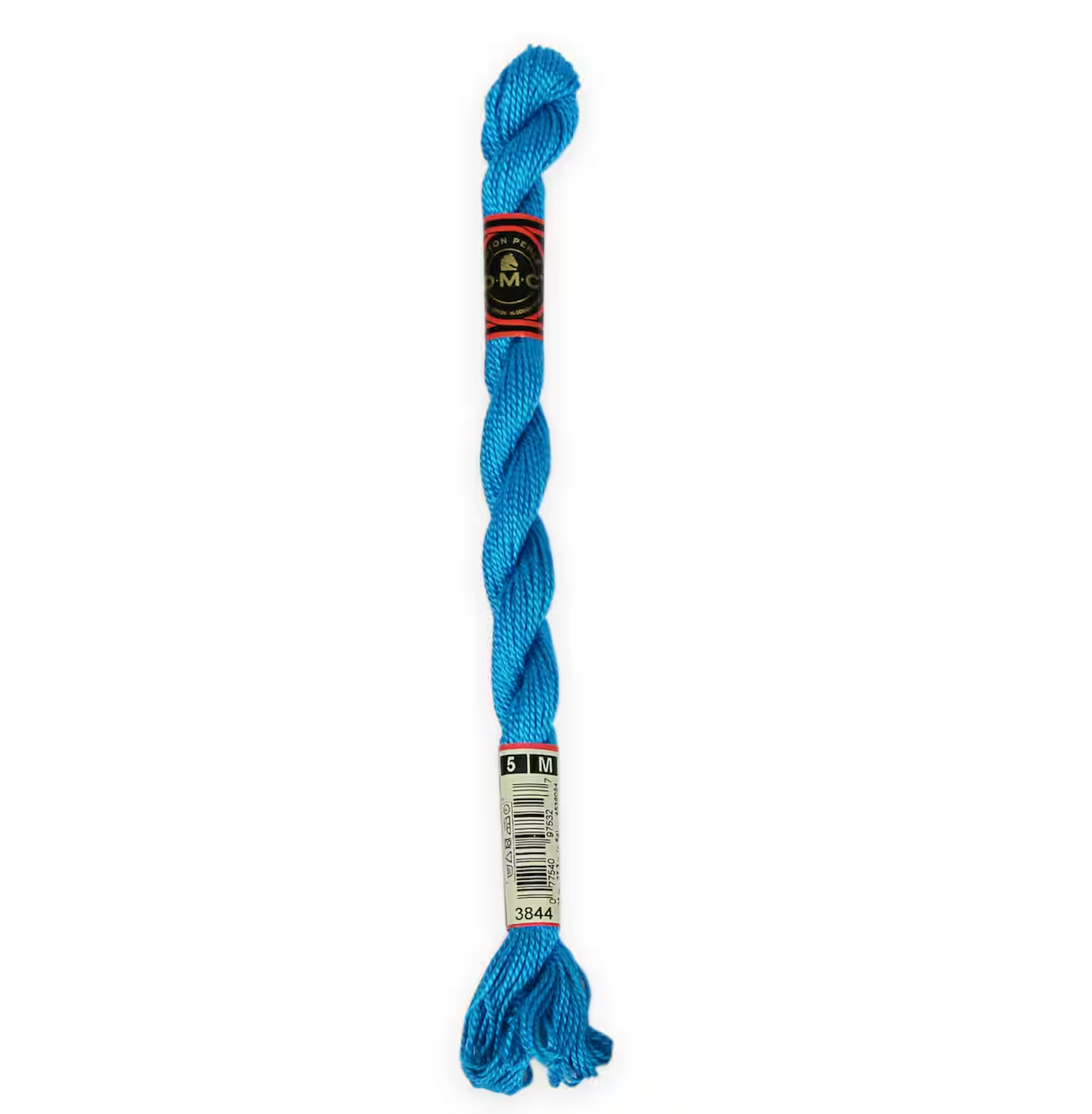 This is Pearl Cotton #5 from DMC in color 3844 Lagoon. A durable cotton thread, excellent for first time stitchers and experts alike! 1 ply on 18 mesh.