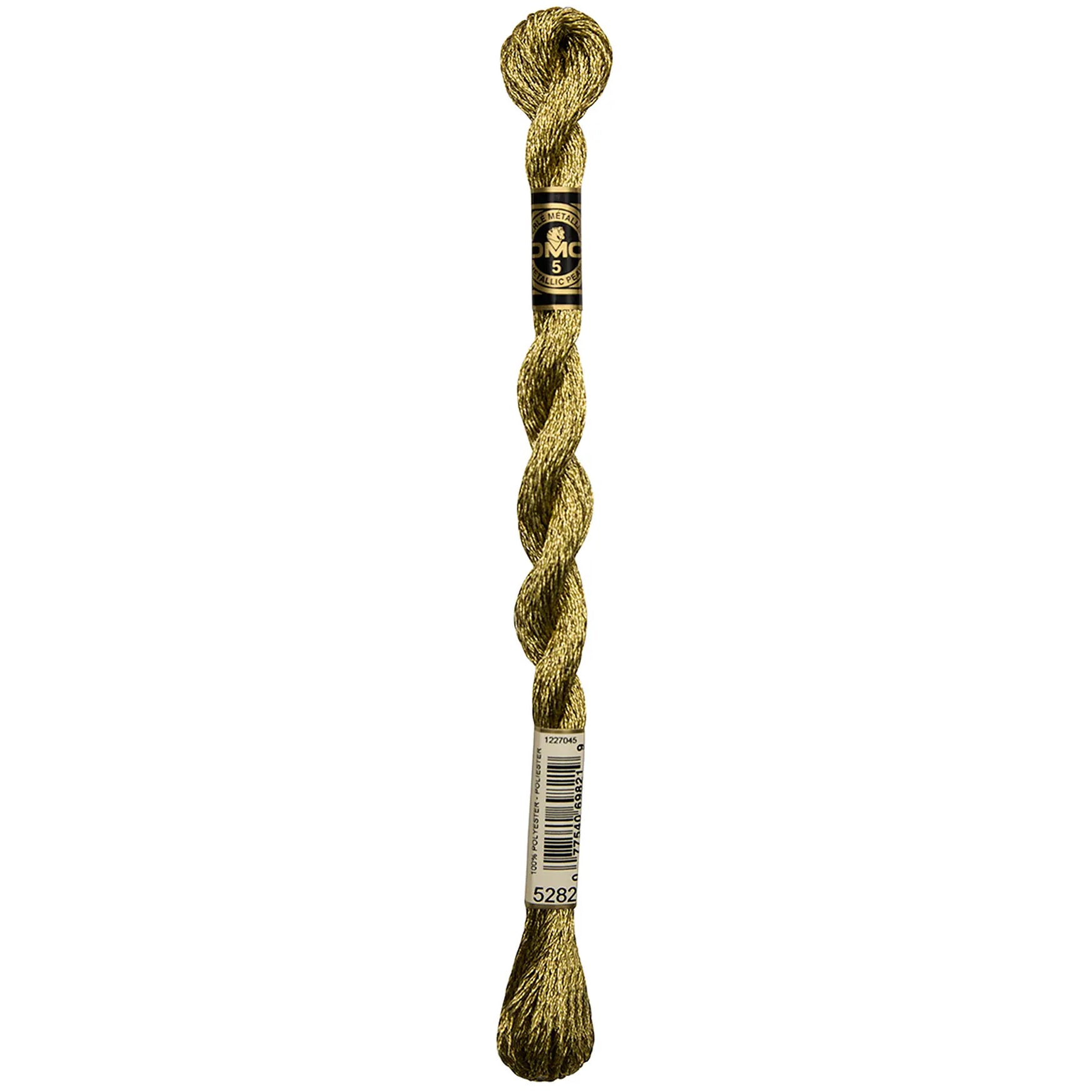 This is Pearl Cotton #5 from DMC in color 5282 Gold. A durable cotton thread, excellent for first time stitchers and experts alike! 1 ply on 18 mesh.