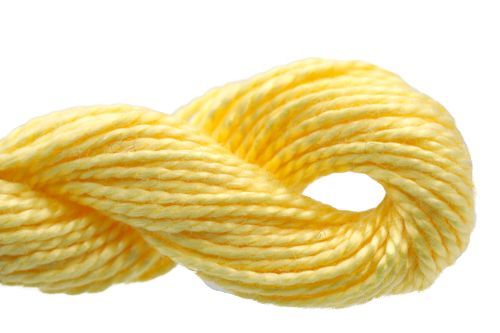 This is Pearl Cotton #5 from DMC in color 0727 Primrose. A durable cotton thread, excellent for first time stitchers and experts alike! 1 ply on 18 mesh.