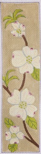 A beautiful hand painted needlepoint canvas from J. Child Designs. Pretty dogwood floral bookmark.
