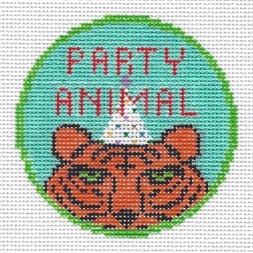 From Doolittle Stitchery's series of merit badges, this hand painted needlepoint canvas celebrates the party animal.