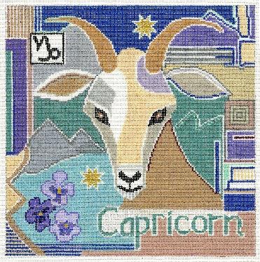 Doolittle Stitchery Capricorn Zodiac Square Needlepoint Canvas is a hand painted needlepoint canvas by Doolittle Stitchery.