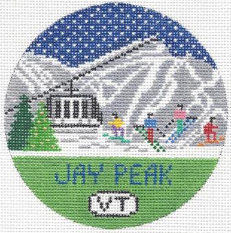 Doolittle Stitchery Jay Peak Round Needlepoint Canvas is a hand painted needlepoint canvas by Doolittle Stitchery.