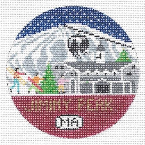 Doolittle Stitchery Jiminy Peak Round Needlepoint Canvas is a hand painted needlepoint canvas by Doolittle Stitchery.