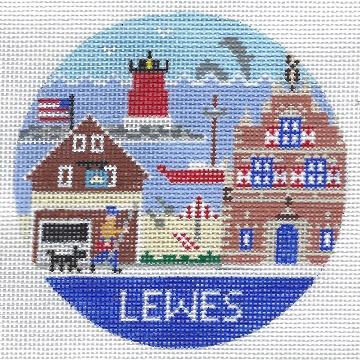 Doolittle Stitchery Lewes Round Needlepoint Canvas is a hand painted needlepoint canvas by Doolittle Stitchery.