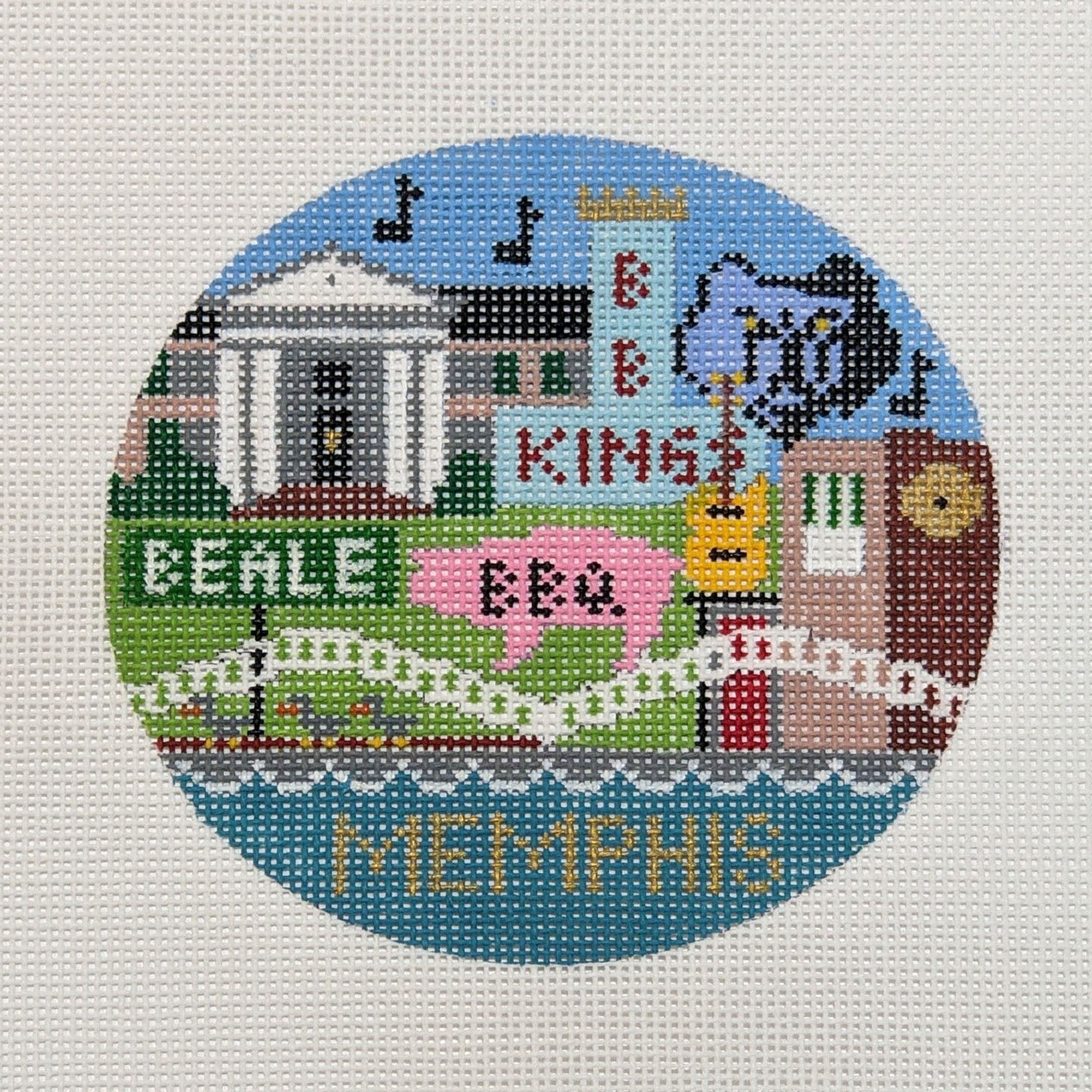 Doolittle Stitchery Memphis Travel Round Needlepoint Canvas