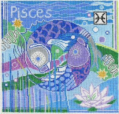 Doolittle Stitchery Pisces Zodiac Square Needlepoint Canvas is a hand painted needlepoint canvas by Doolittle Stitchery.