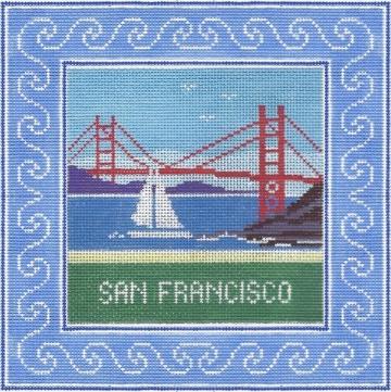 Doolittle Stitchery San Francisco Square Needlepoint Canvas is a hand painted needlepoint canvas by Doolittle Stitchery.