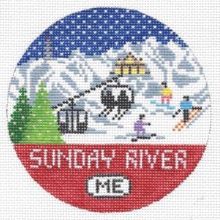 Doolittle Stitchery Sunday River Round Needlepoint Canvas is a hand painted needlepoint canvas by Doolittle Stitchery.