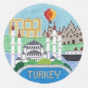 Doolittle Stitchery Turkey Round Needlepoint Canvas is a hand painted needlepoint canvas by Doolittle Stitchery.