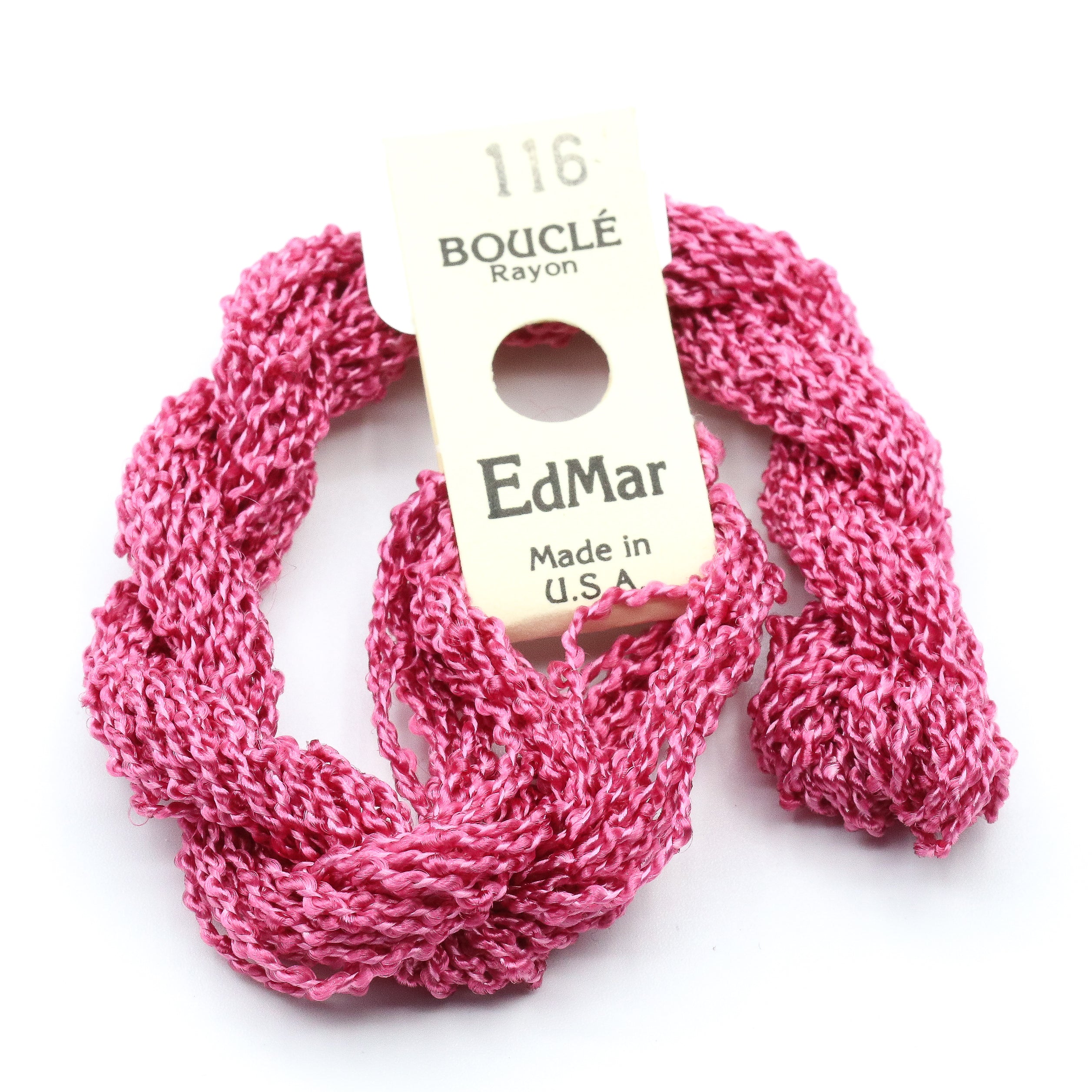 This is Boucle from EdMar in color 116 Antique rose. 2 or 3 ply on 13 mesh, 1 ply on 18 mesh. Great for trees, clouds, water, or fur. Also try couching it for a different effect!