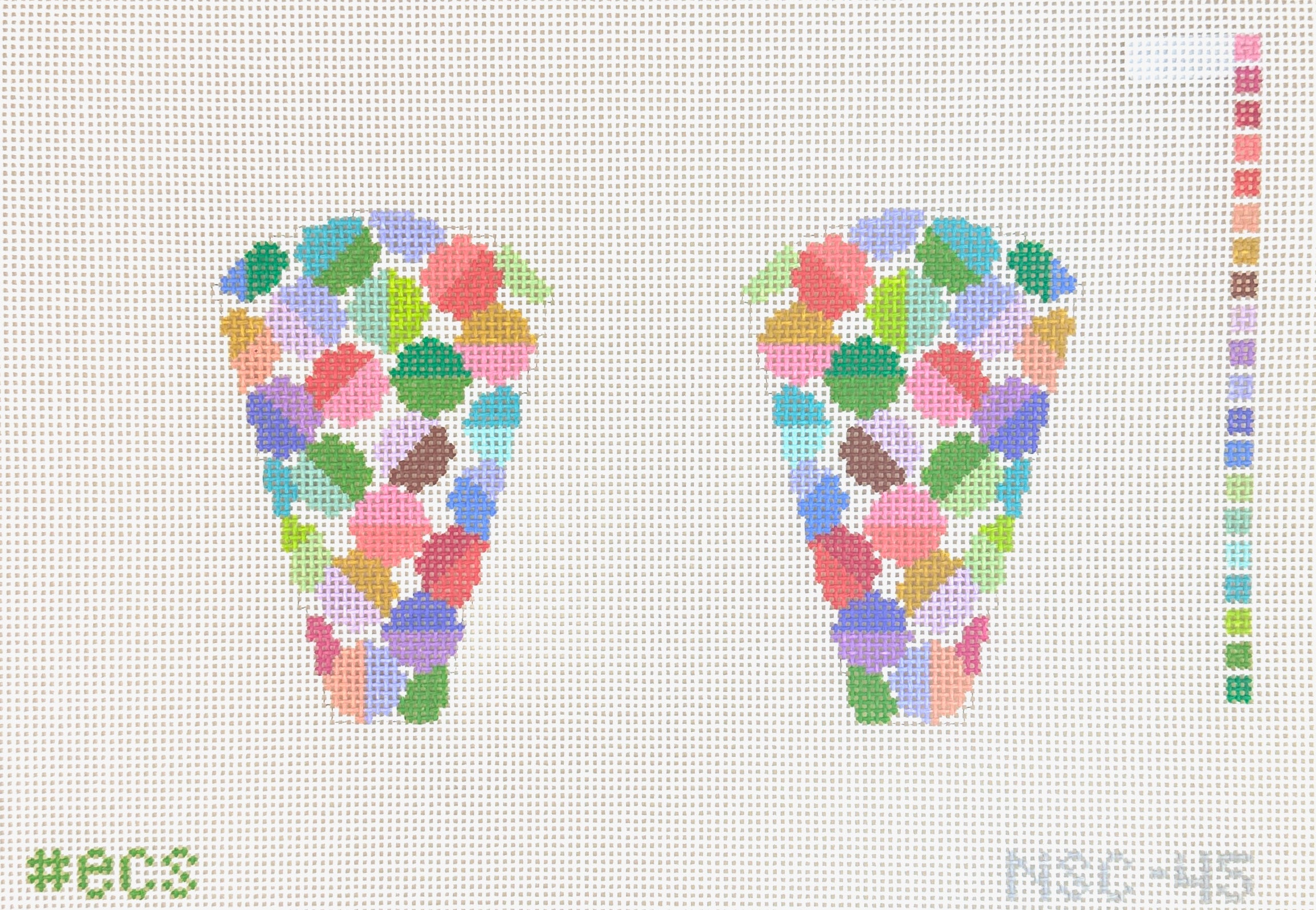 This is a hand painted needlepoint canvas by Elizabeth Crane Swartz. It features a scissor case in her signature Lulu pattern of color blocked circles. Finished example shown for inspiration, thread and finishing service sold separately.