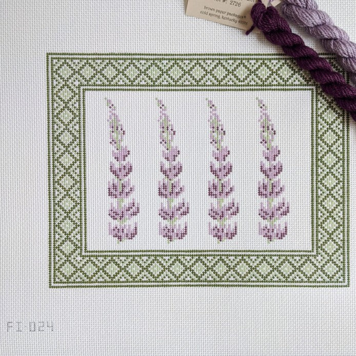 Fire and Iris Lupine Sign - Geo Border Needlepoint Canvas
