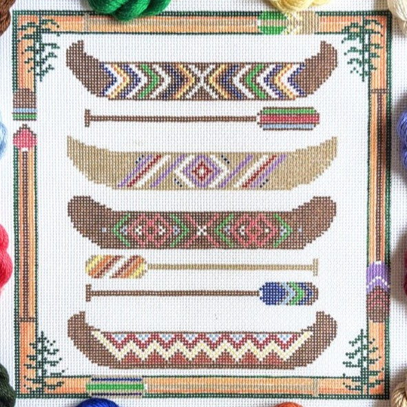 Fire and Iris Paddlin' Canoes Needlepoint Canvas