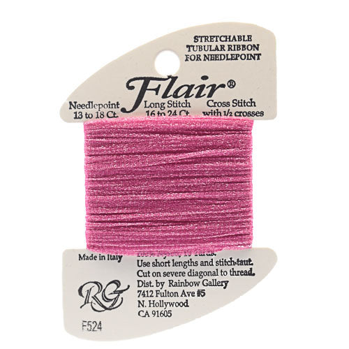 This is Flair from Rainbow Gallery in color 524 Wild Rose. A tubular nylon thread, great for tutus and other textures. Works to greatest effect with longer stitches.1 ply on all sizes.