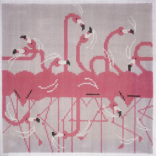 Charley Harper Flamingo Row Eyeglass Case Needlepoint Canvas