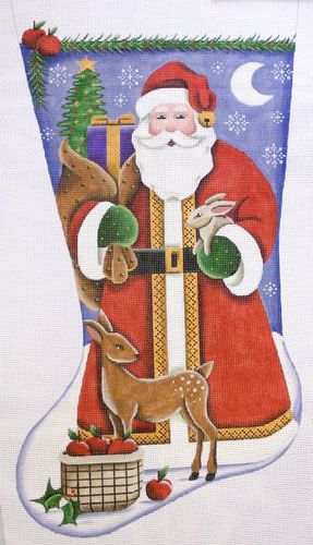 A beautiful hand painted needlepoint canvas from Rebecca Wood Designs. This is a great Santa themed stocking.