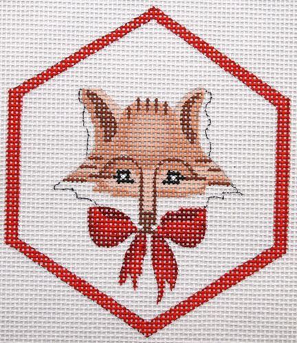 Kate Dickerson Needlepoint Collections Fox with Red Bow Ornament Needlepoint Canvas