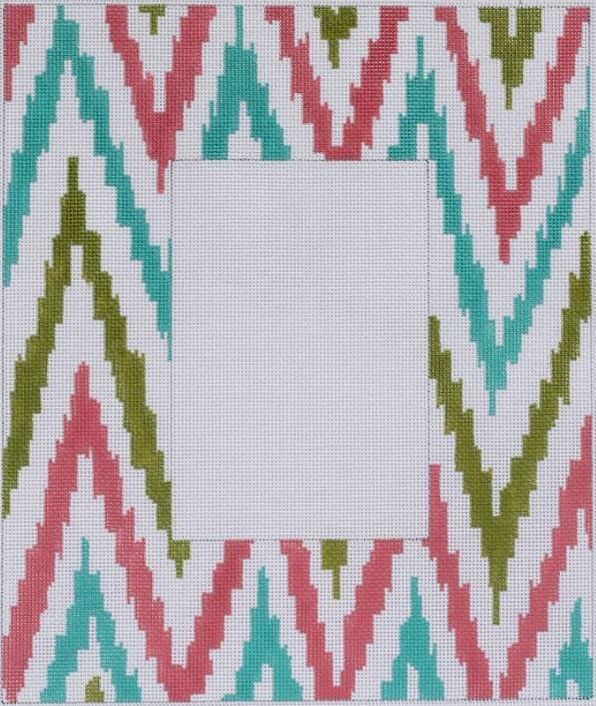 Kate Dickerson Needlepoint Collections Large Ikat Zigzag Frame - Cyan, Pink, Green Needlepoint Canvas