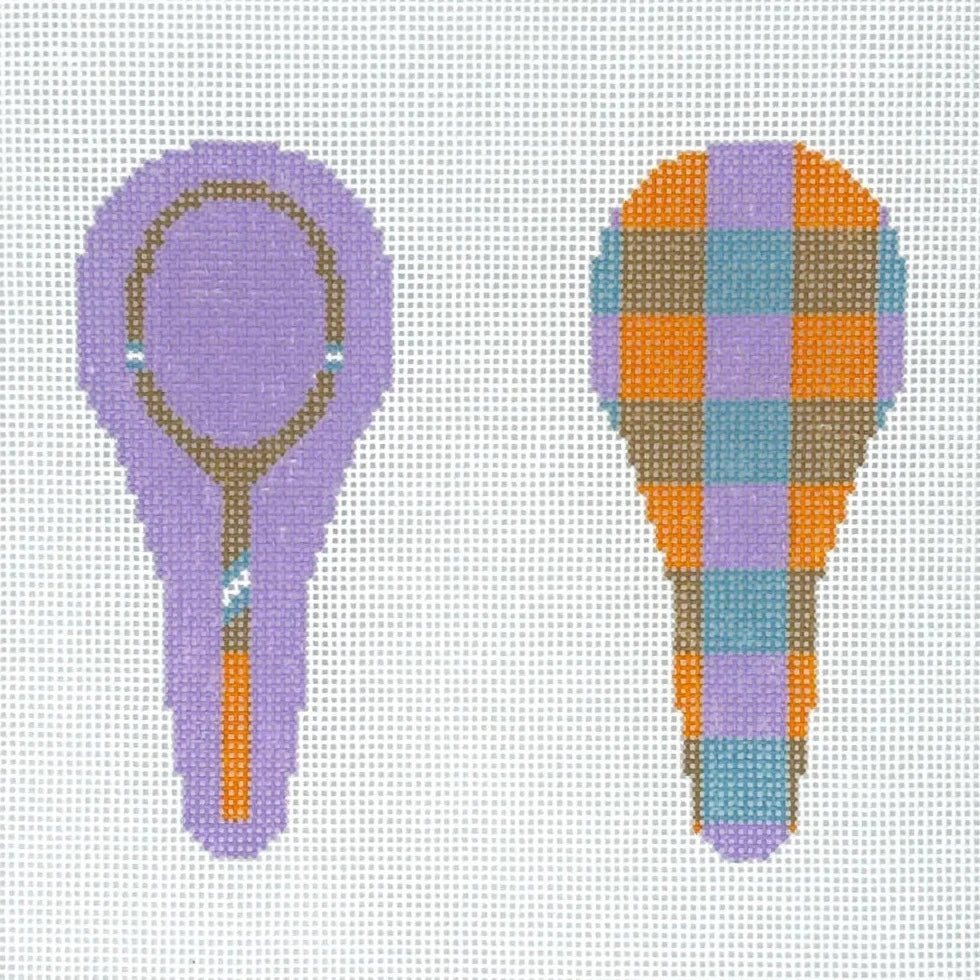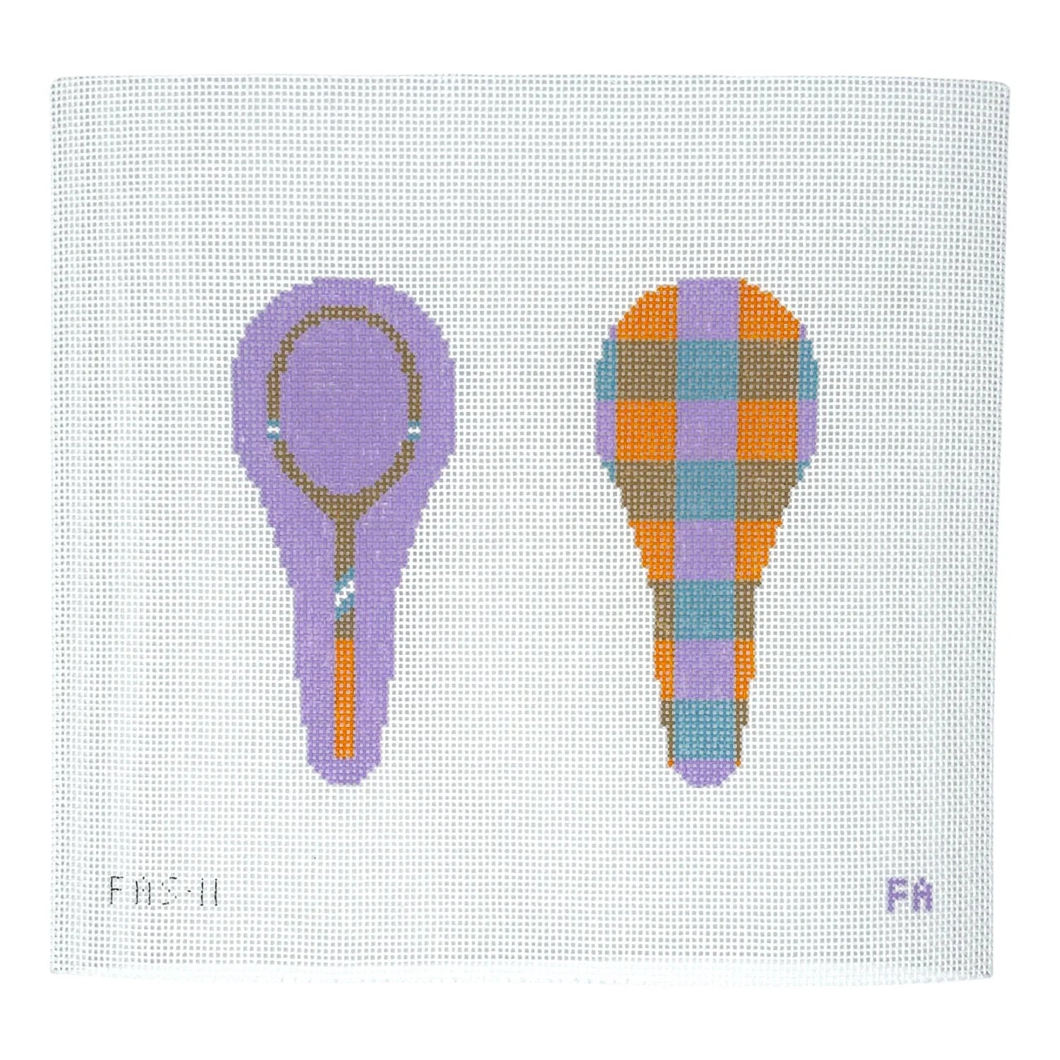This hand painted needlepoint canvas by Frances Abel Studio features a classic name tag motif with "Hello My Name Is" in blue.