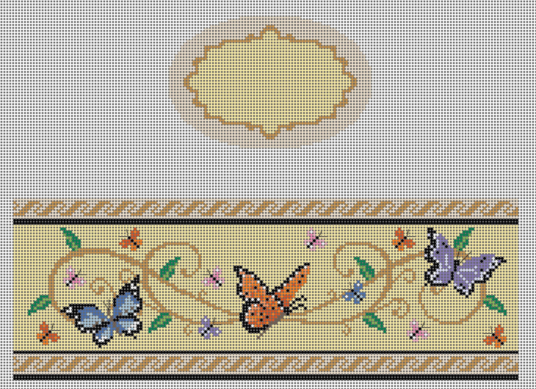 This hand painted needlepoint canvas by Funda Scully is designed to be finished into a oval hinged box. It features a beautiful spring design with fluttering butterflies. Gold hardware is included.