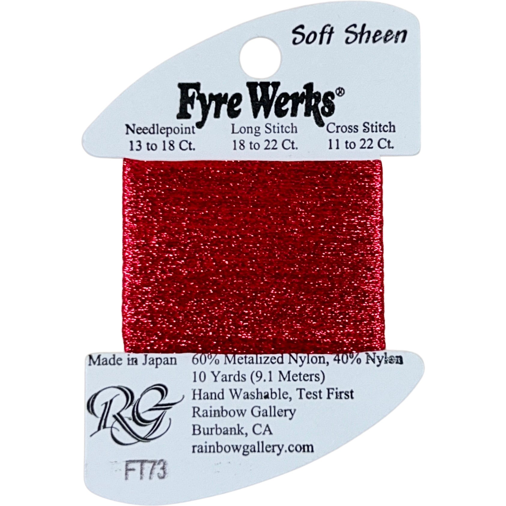 This is Soft Sheen from Rainbow Gallery in color 73 Christmas Red. 60% metalized nylon, 40% nylon.