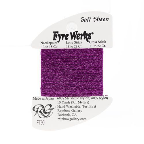 This is Soft Sheen from Rainbow Gallery in color 90 Wild Magenta. 60% metalized nylon, 40% nylon.