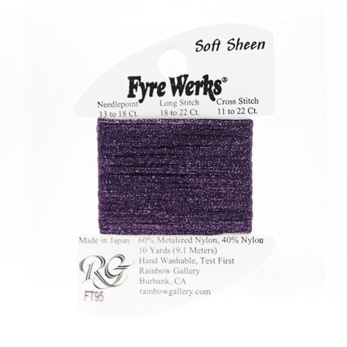 This is Soft Sheen from Rainbow Gallery in color 95 Plum Perfect. 60% metalized nylon, 40% nylon.