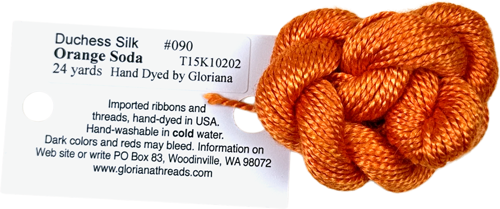 This is Duchess Silk from Gloriana in color 090 Orange Soda. A soft variegated silk that is perfect for 13 mesh! 1 ply on 13 mesh.