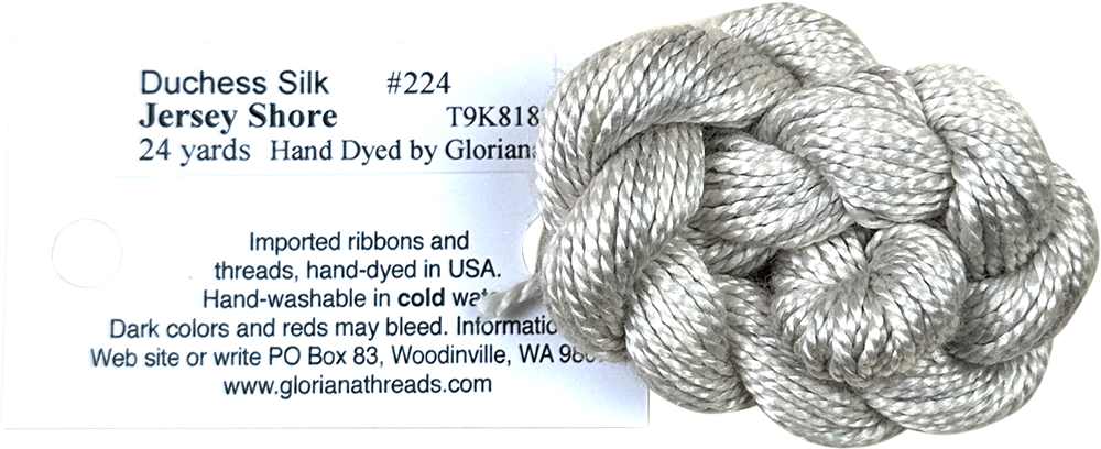 This is Duchess Silk from Gloriana in color 224 Jersey Shore. A soft variegated silk that is perfect for 13 mesh! 1 ply on 13 mesh.