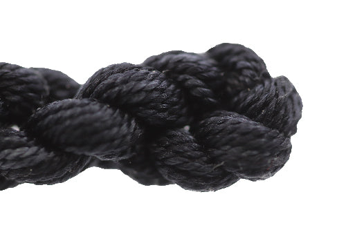 This is Princess Perle from Gloriana in color 001 Charcoal. A lush perled silk thread in a range of variegated colors.1 ply on 18 mesh.