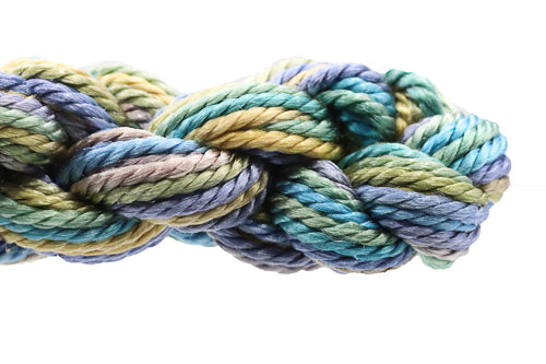 This is Princess Perle from Gloriana in color 040 Highland Meadows. A lush perled silk thread in a range of variegated colors.1 ply on 18 mesh.