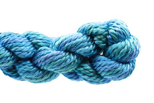 This is Princess Perle from Gloriana in color 068 Caribbean Sea. A lush perled silk thread in a range of variegated colors.1 ply on 18 mesh.